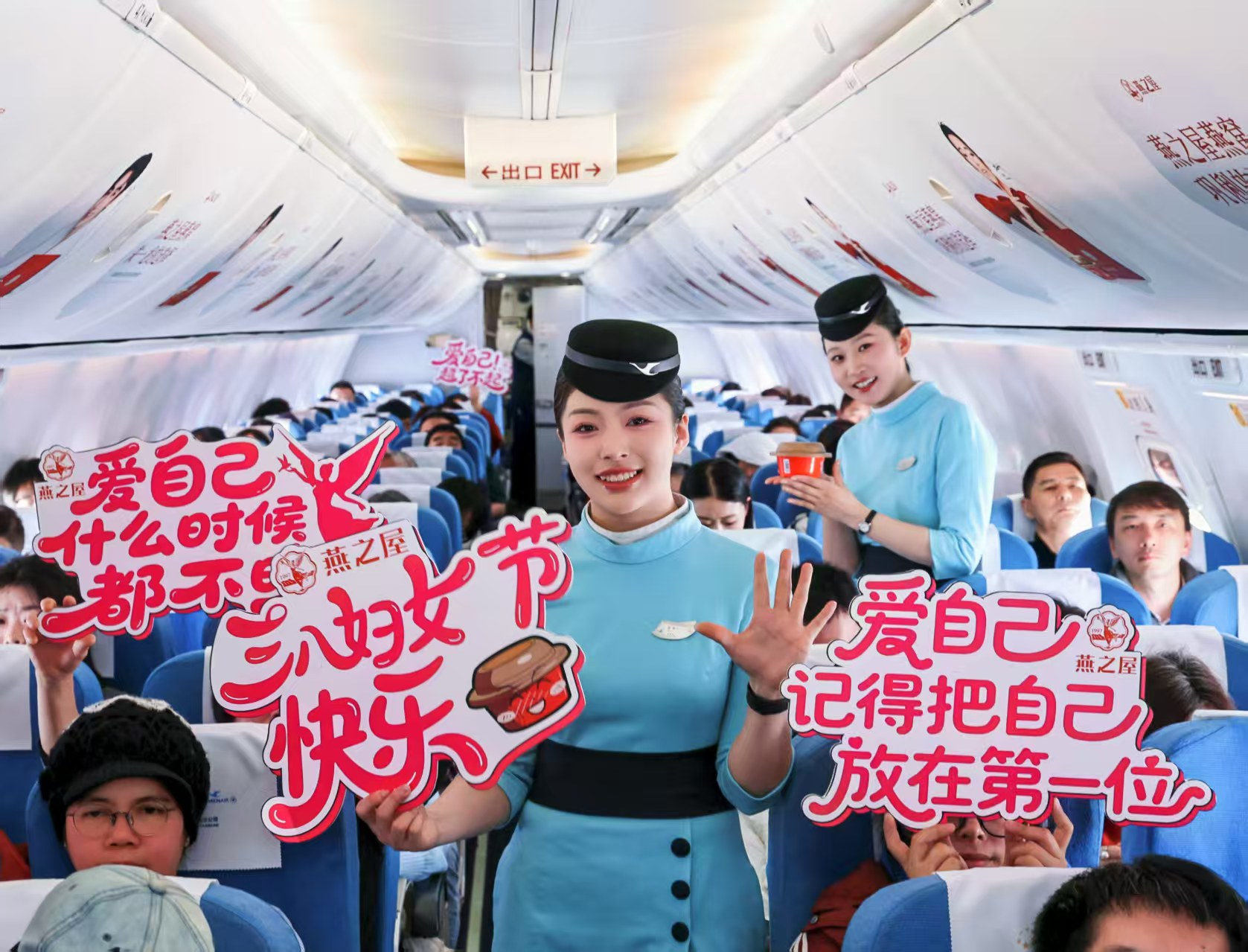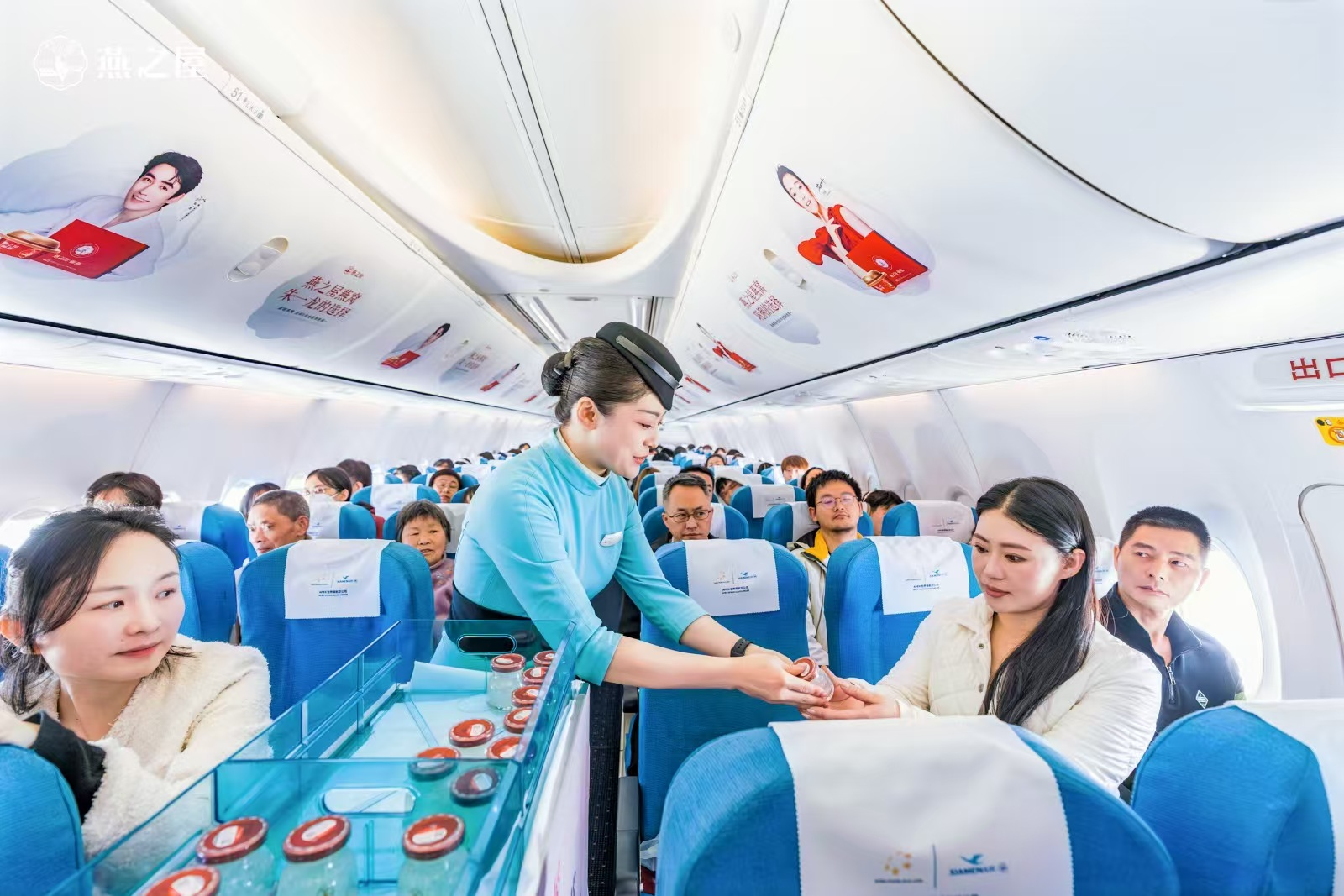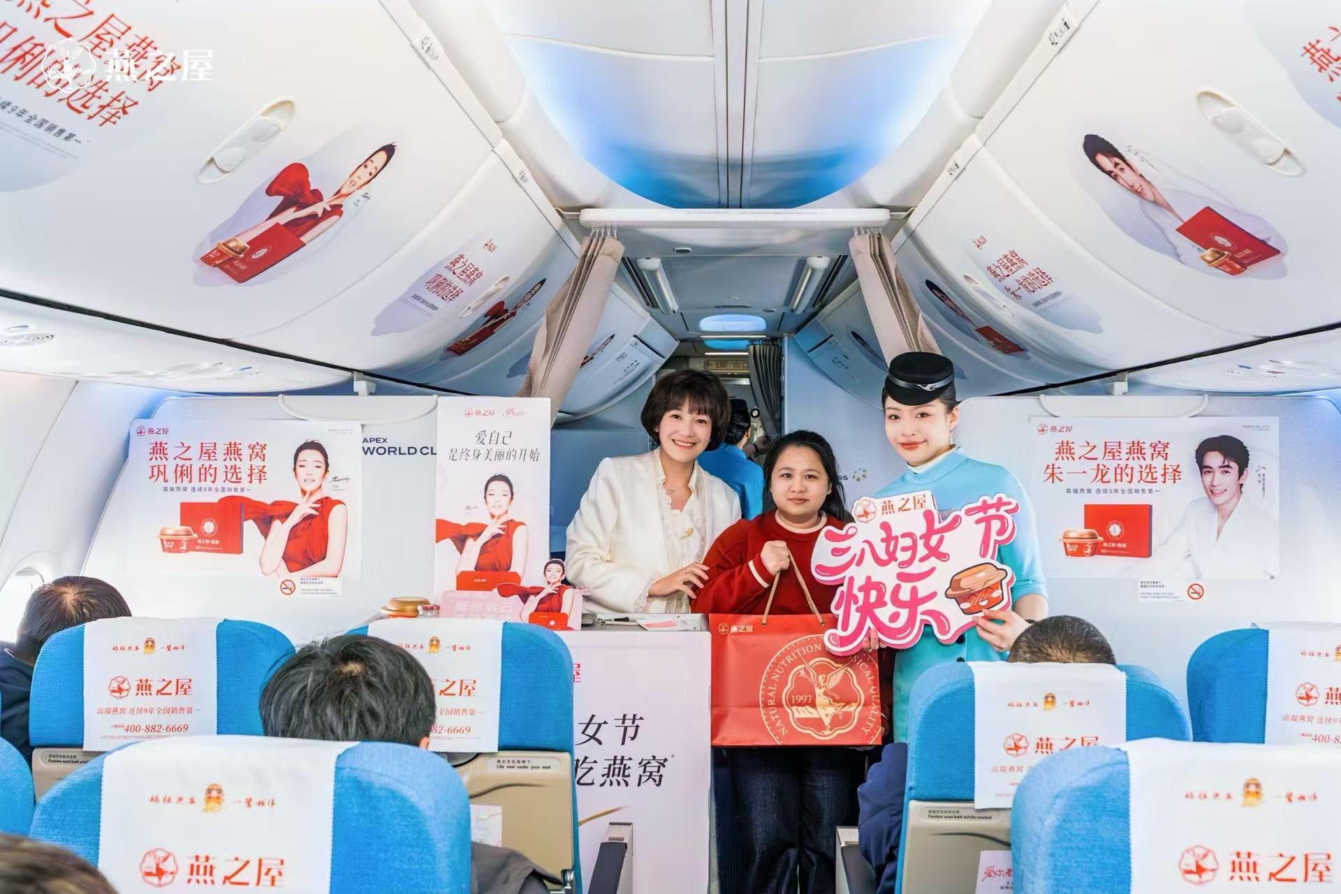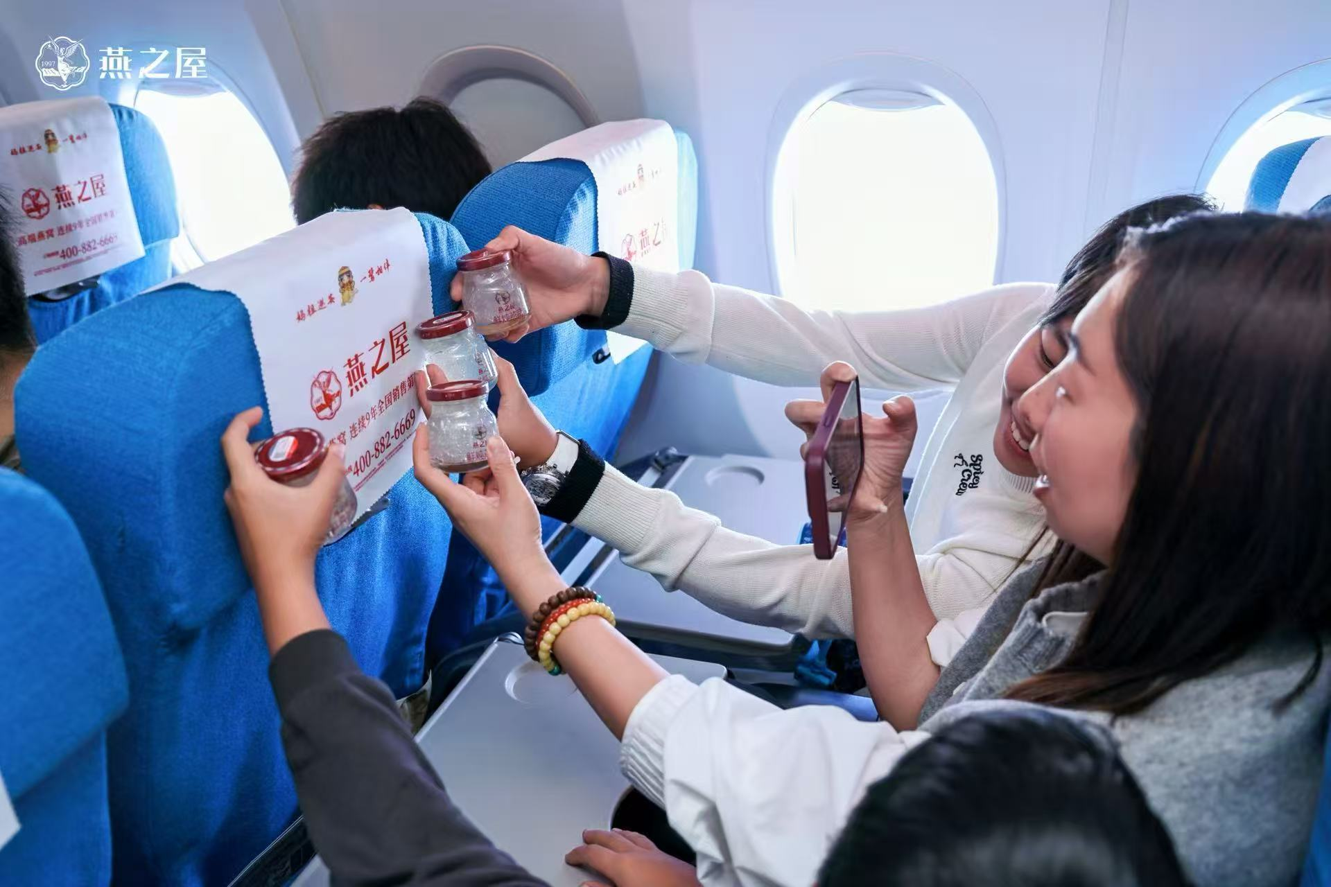 燕之屋與廈門航空打造的婦女節主題航班由廈門起飛,前往北京。登機前,節日氣息就已從登機口蔓延開來。燕之屋在登機口設置品牌展區,邀請旅客拍照打卡,并派送燕之屋燕窩肽蘇打水,溫暖開啟活動的首波福利,陪伴旅客愉快登機。