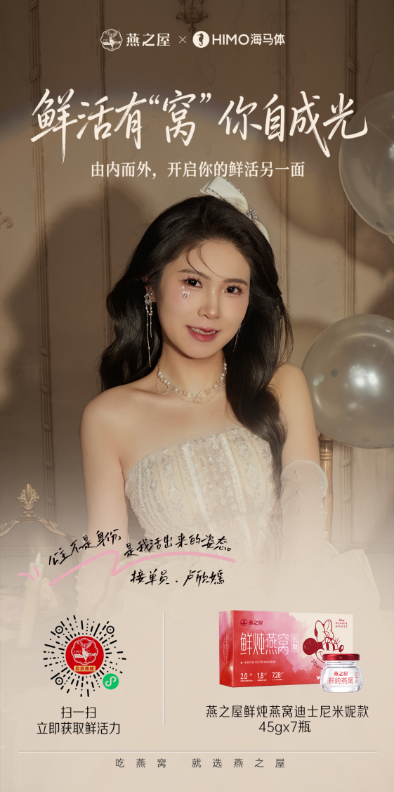 在此次三八婦女節,燕之屋攜手海馬體定格她們的鮮活另一面的同時,更以溫潤滋養之力,呈獻燕之屋鮮燉燕窩(迪士尼米妮限定款)禮盒,助力每一位女性由內而外綻放光彩,展現自信從容的生命姿態。禮盒內含燕之屋新一代鮮燉燕窩45g*7瓶,采用115°C精燉鎖鮮,激活更多燕窩活性營養,釋放7倍滋養力,吃1瓶約等于7瓶普通燉煮燕窩,7.28倍小分子燕窩蛋白